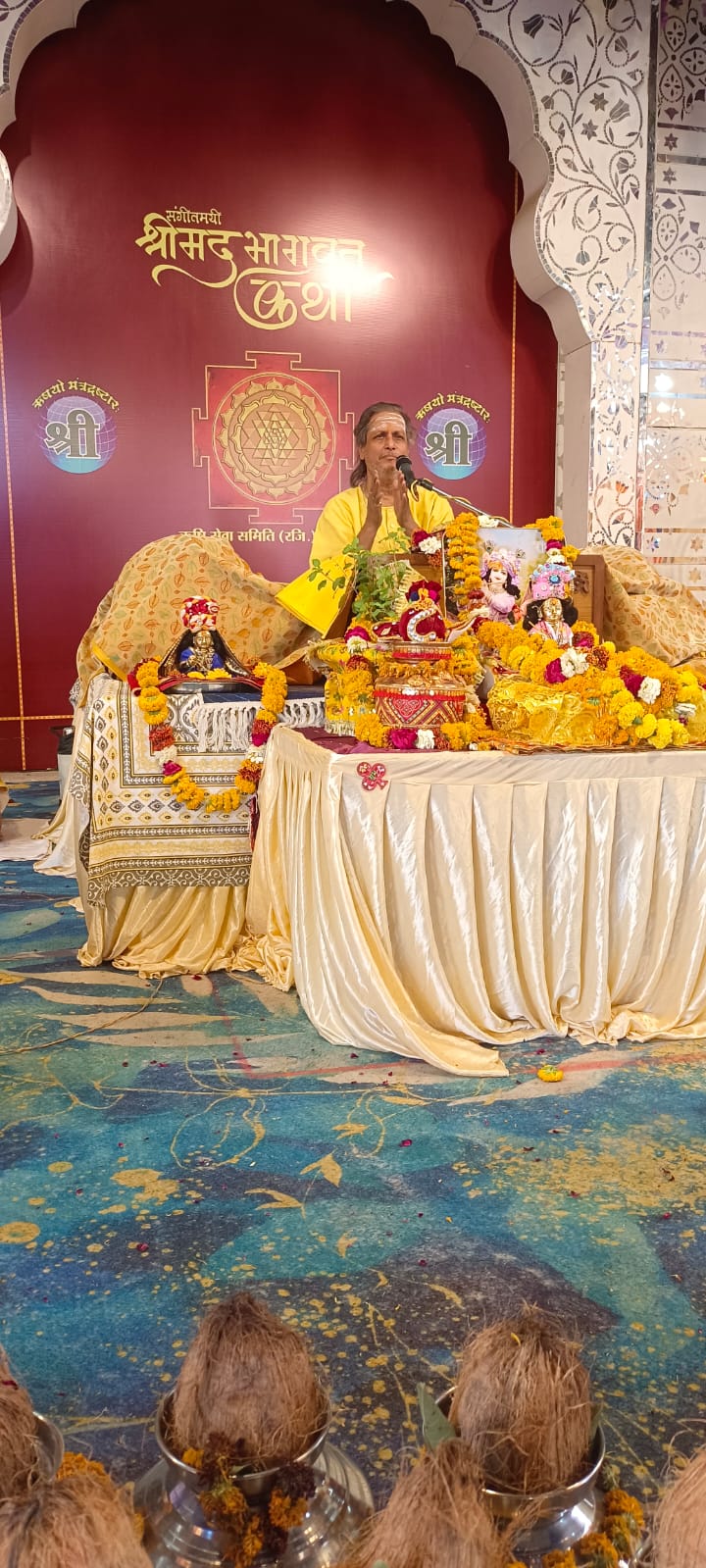 भारत विकास परिषद ग्वालियर शाखा एवं वैश्य मण्डल के पदाधिकारियों द्वारा पूज्य ऋषिजी का स्वागत अभिनन्दन किया गया। पोथीपूजन एवं व्यासपूजन संतोष अग्रवाल, उमेश उप्पल, प्रमोद गर्ग, एवं मनोज अग्रवाल द्वारा सपत्नीक किया गया। आनन्द मोहन अग्रवाल, संजय शर्मा, रामबाबू अग्रवाल, अम्बरीश गुप्ता, देवेंद्र तिवारी, हरिओम मिश्र, मनीष अग्रवाल, मनीष गोयल, रामसिंह तोमर, रामप्रसाद शाक्य, गिरीश शर्मा, ललित मोहन माहेश्वरी, जगमोहन बिसेन, अमित शिवहरे, अनिल पुनियानी आदि भक्त श्रद्धालुओं ने कथा आरती की। प्रातः 7:30 से आयोजनस्थल पर बनी ऋषि कुटिया में जन्मपत्रिका के माध्यम से निःशुल्क ज्योतिषीय परामर्श पूज्य ऋषिजी द्वारा प्रदान किया गया। सायं 7 बजे से महालक्ष्मी आराधना में सिद्धविनायक गणेशजी का आवाहनक्रम पूज्य ऋषिजी के निर्देशन में सम्पादित हुआ। मंगलवार की कथा में वामन अवतार, श्रीराम चरित्र एवं श्रीकृष्ण जन्मोत्सव की उत्साहपूर्ण लीला रहेगी जिसमें प्रांगण के श्रृंगार आदि की व्यवस्था क्षेत्रवासियों द्वारा करायी जा रही।