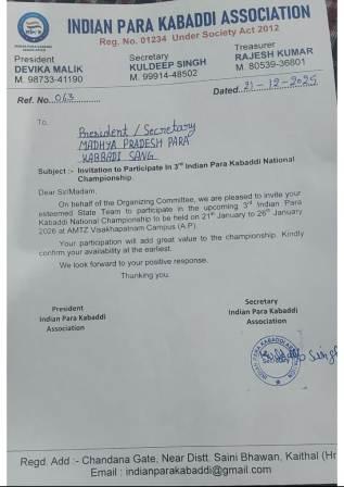 मध्य प्रदेश की टीम ने भी भाग लिया ।मध्य प्रदेश पैरा कबड्डी खिलाड़ी अनूप ,कप्तान ,जिला- भिंड, संजीव कोटिया ,उपकप्तान जिला ग्वालियर ,कुलदीप यादव ,जिला -ग्वालियर, गोविंद सिंह भदोरिया, जिला भिंड ,ओमप्रकाश अहिरवार, छतरपुर , नीरज -ग्वालियर, जितेद्र -दतिया ,प्रताप सिंह- जिला -ग्वालियर ,अर्जुन -दमोह प्रिस पांडे -भोपाल- मुकद्दर कुमार -धार , मनीष बालाघाट, सूरज सोनेवाल -छतरपुर ,पैरा कबड्डी टीम का हिस्सा रहे। इस टूर्नामेंट में मध्य प्रदेश ने क्वार्टर फाइनल तक का सफर तय किया और कांस्य पदक प्राप्त किया ।मध्य प्रदेश व्हील चेयर रगवी फुटबॉल एसोसिएशन के अध्यक्ष, ओ. पी. दीक्षित एवं अन्य खेल प्रेमियों ने सभी पैरा कबड्डी टीम के खिलाड़ियों को बधाई दी है। उन्होंने कहा कि यह भारत का परंपरागत खेल है जो ग्रामीण अंचल में आज भी जीवंत है ।स्वस्थ और सामर्थ्यवान भारत के लिए खेल अविभाज्य अंग हैं ।इससे न केवल दिव्यांगजन का समावेशन होता है बल्कि सामाजिक समरसता भी संवर्धित होती है।© Sandhyadesh. All Rights Reserved. Developed by Anuj Mathur