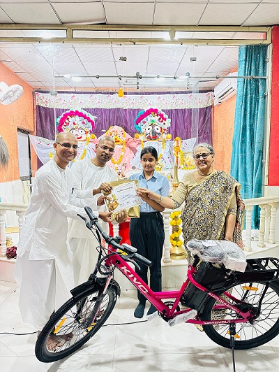 ग्वालियर। इस्कॉन द्वारा आयोजित की गई मूल्य शिक्षा प्रतियोगिता के परिणाम शनिवार को इस्कॉन मंदिर दौलतगंज में घोषित किए गए। जिसमें जिला स्तर पर प्रथम आने वाली छात्रा को इलेक्ट्रिक साइकिल, दूसरे से पांचवां स्थान पाने वाले छात्रों को इवोन साइकिल व करीब 80 छात्रों को स्मार्ट वॉच, थर्मस बॉटल व टीशर्ट का वितरण किया गया।